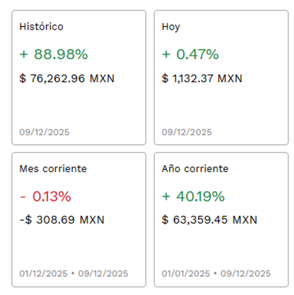 Al cierre de Noviembre 2025, este es el rendimiento acumulado histórico y del año en curso: